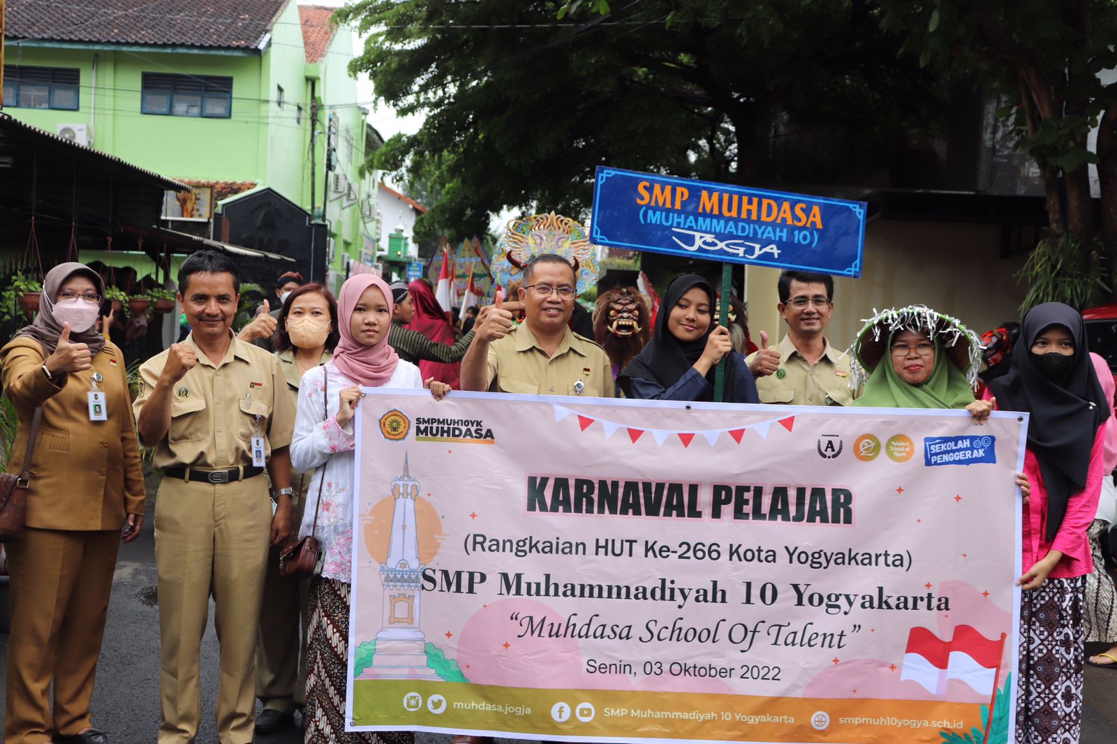 Acara tersebut dibuka oleh Kepala Dinas Pendidikan Kota Yogyakarta, Budi Santosa Asrori, S.E., M.Si., dalam sambutannya beliau mengungkapkan rasa bangga dan berterima kasih kepada seluruh warga Muhdasa yang ikut berpartisipasi memeriahkan HUT Kota Yogyakarta ke-266 dengan mengerahkan segala potensi yang dimiliki, karnaval di hari pertama HUT Yogyakarta juga sebagai sarana promosi sekolah untuk lebih dikenal masyarakat. Tampak hadir Kepala Bidang Pembinaan dan Pengembangan Pembelajaran SMP, Hasyim, S.IP., M.Acc. beserta Staf dan Jajarannya.