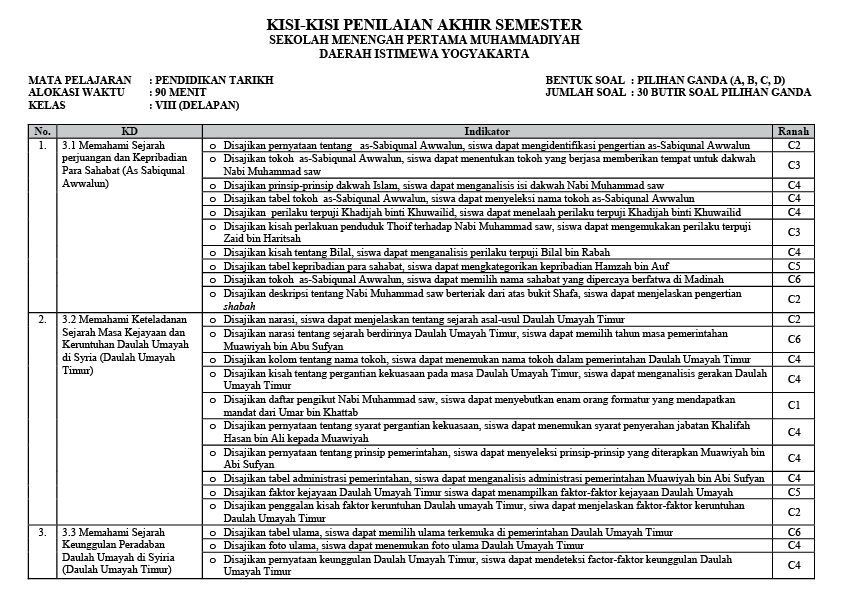 Kisi - kisi PAS I Pendidikan Tarikh Kelas 8